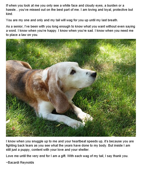 When we look into the eyes of an old pet we wonder about their past life and question why someone would discard someone who loved them so much.